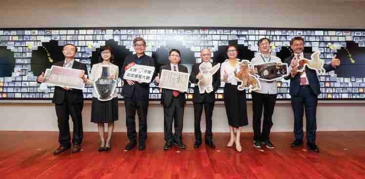 壹号平台携手创利空间为故宫建置的智慧文物互动导览墙及轮播墙,,,今日正式启用。。(左四:壹号平台新事业暨投资管理总部副总经理杨本豫、、、、右四:故宫博物院院长吴密察、、、、右三:太极影音董事长黄宝云)