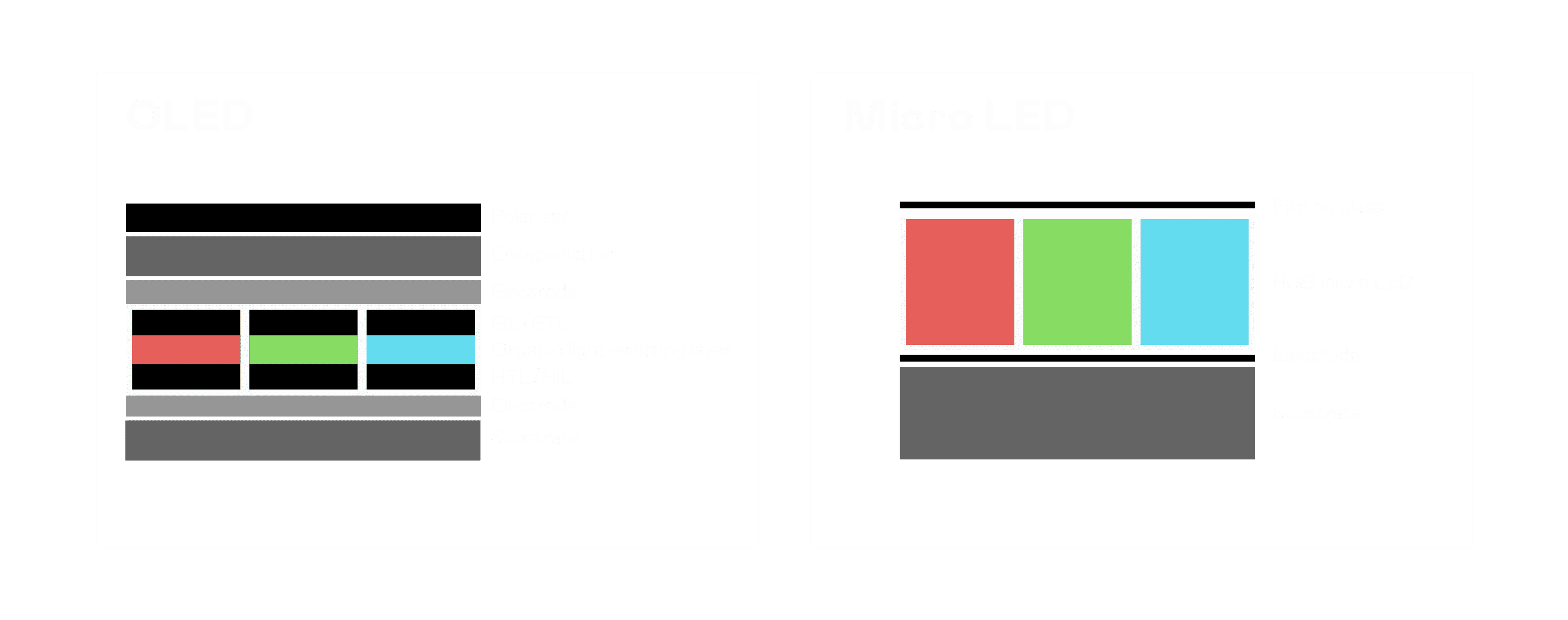 以 LED 做为显示画素,,可让 LED 的发光效率发挥到极致,,,从而让显示器具备优异的亮度表现,,不论是在户外或室内,,,,均具备出众的显示效果。。。。同时,,,与使用有机材料的 OLED 相比,,LED 具备更稳定、、寿命更长的特性,,不仅不会有画面烙印问题,,而且更不容易出现故障、、、坏点。。